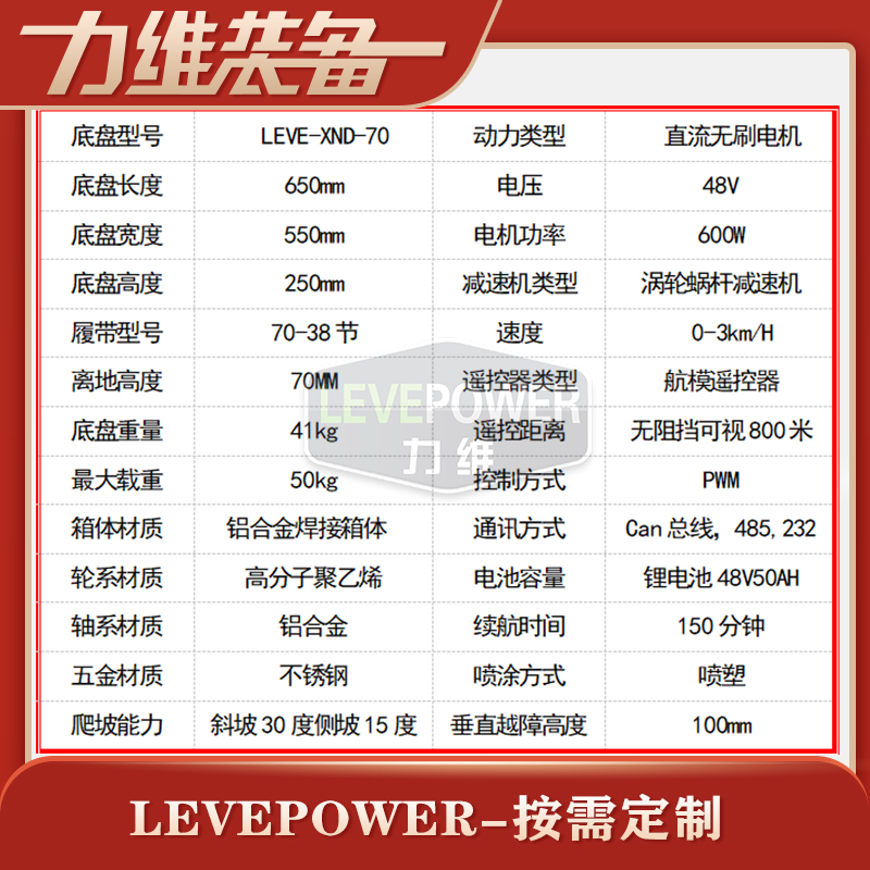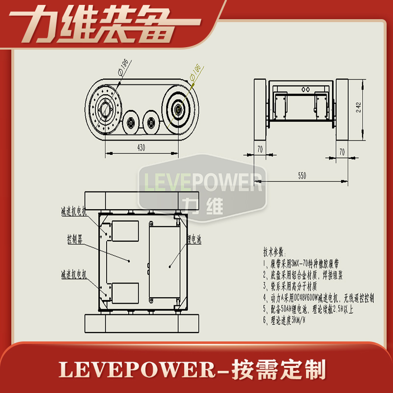 LEVE-XND-70特種橡膠履帶底盤采用天橡膠內(nèi)加凱夫拉纖維經(jīng)過高溫硫化擠壓成型,材質(zhì)輕、耐磨性能強(qiáng),是一款不錯(cuò)機(jī)器人橡膠履帶。