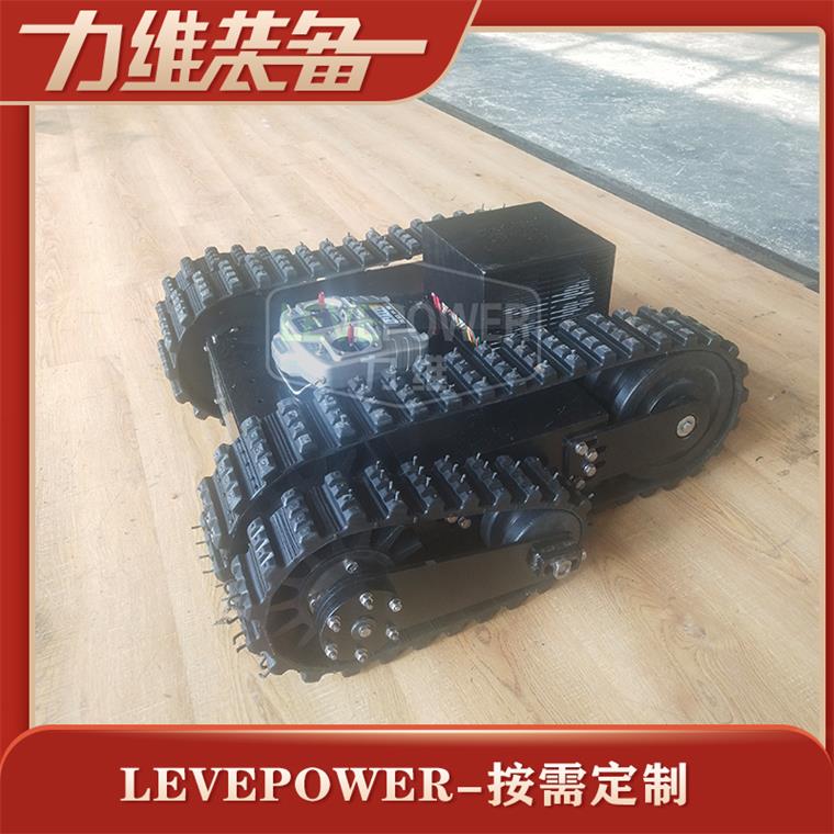 此款微型擺臂底盤主履帶采用寬度100mm特種橡膠履帶,擺臂履帶采用寬度70mm機器人履帶,內置高強纖維,是一款抗拉強度高,耐磨性能好的機器人橡膠履帶。支架采用鋼板焊接焊接而成,車體表面做噴塑處理。輪系采用高分子聚乙烯材質,重量輕,密度高,和履帶磨合性搭配。采用直流無刷電機,渦輪蝸桿減速機配合使用,履帶底盤電池采用磷酸鐵鋰鋰電池,體積小,續(xù)航時間長,履帶車輛前置履帶擺臂,擺臂可上下擺動,前后行走運動,體積小巧靈活,此款擺臂機器人可載重50kg,底盤上可裝置攝像頭,機械臂等物品,用于狹小環(huán)境內偵察等工作使用。