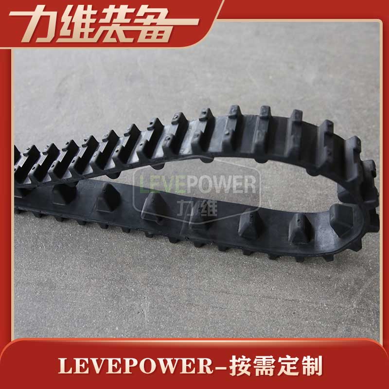 此履帶為撥齒履帶,外花紋采用矩形橫紋設(shè)計(jì),內(nèi)齒采用節(jié)距適中的三角塊狀設(shè)計(jì),帶體較厚,此款設(shè)計(jì)提高了履帶自身的載重能力,和抓地力是一款適合用于機(jī)器人底盤的配套履帶。
