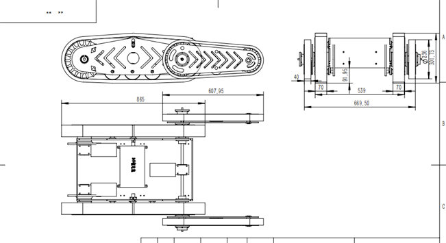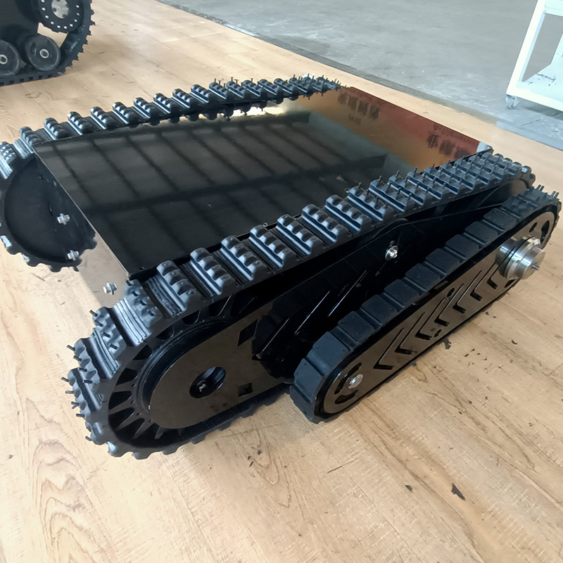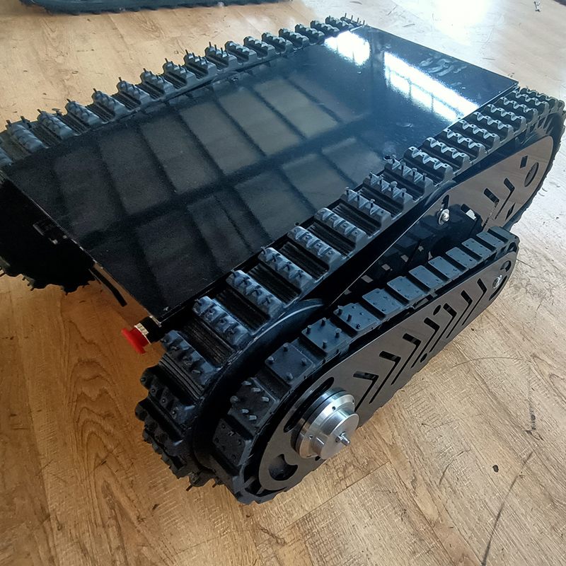 該底盤主體履帶使用100mm寬耐磨橡膠履帶,外花紋橫紋設(shè)計,提高攀爬能力。擺臂履帶采用40mm寬度機(jī)器人橡膠履帶,底盤箱體經(jīng)過高溫噴砂噴塑防銹處理,主題底盤采用2個24v200w伺服直流無刷電機(jī),擺臂采用1個24v200w伺服直流無刷電機(jī),渦輪蝸桿減速機(jī),可載重50kg,是一種操控既方便,有實用的底盤系統(tǒng),在不平坦的路面,爬坡,越障非常好用。是一款全地形底盤。電池采用磷酸鐵鋰鋰電池,持續(xù)續(xù)航時間可達(dá)4個小時長時間續(xù)航。
